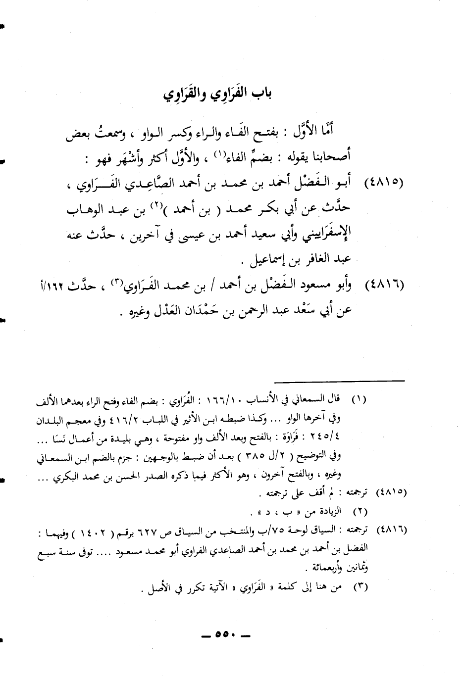 4816 - وَأَبُو مَسْعُود الْفضل بن أَحْمد بن مُحَمَّد الفراوي حدث عَن أبي سعد عبد الرَّحْمَن بن حمدَان الْعدْل وَغَيره