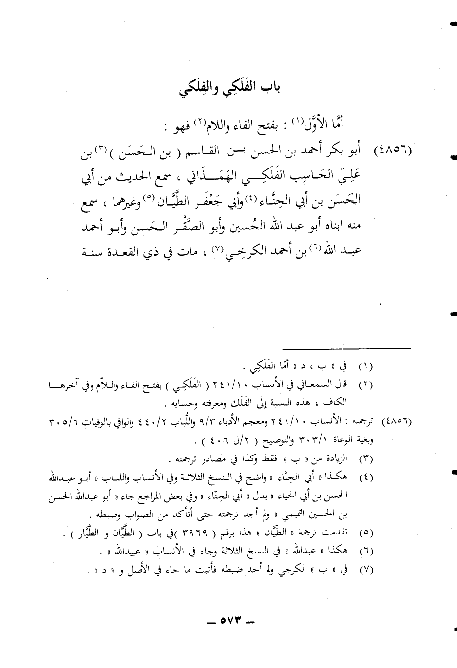 4856 - أَبُو بكر أَحْمد بن الْحسن بن الْقَاسِم بن الْحسن بن عَليّ الحاسب الفلكي الهمذاني سمع الحَدِيث من ابي الْحسن بن أبي الْحِنَّاء وَأبي جعفرالطيان وَغَيرهمَا سمع مِنْهُ أبناه أَبُو عبد الله الْحُسَيْن وابو الصَّقْر الْحسن وابو أَحْمد عبد الله بن احْمَد الْكَرْخِي مَاتَ فِي ذِي الْقعدَة سنة أَربع وَثَمَانِينَ وثلاثمائة وَله خمس وَثَمَانُونَ سنة وَكَانَ جَامعا لفنون من الْعلم فَاضلا