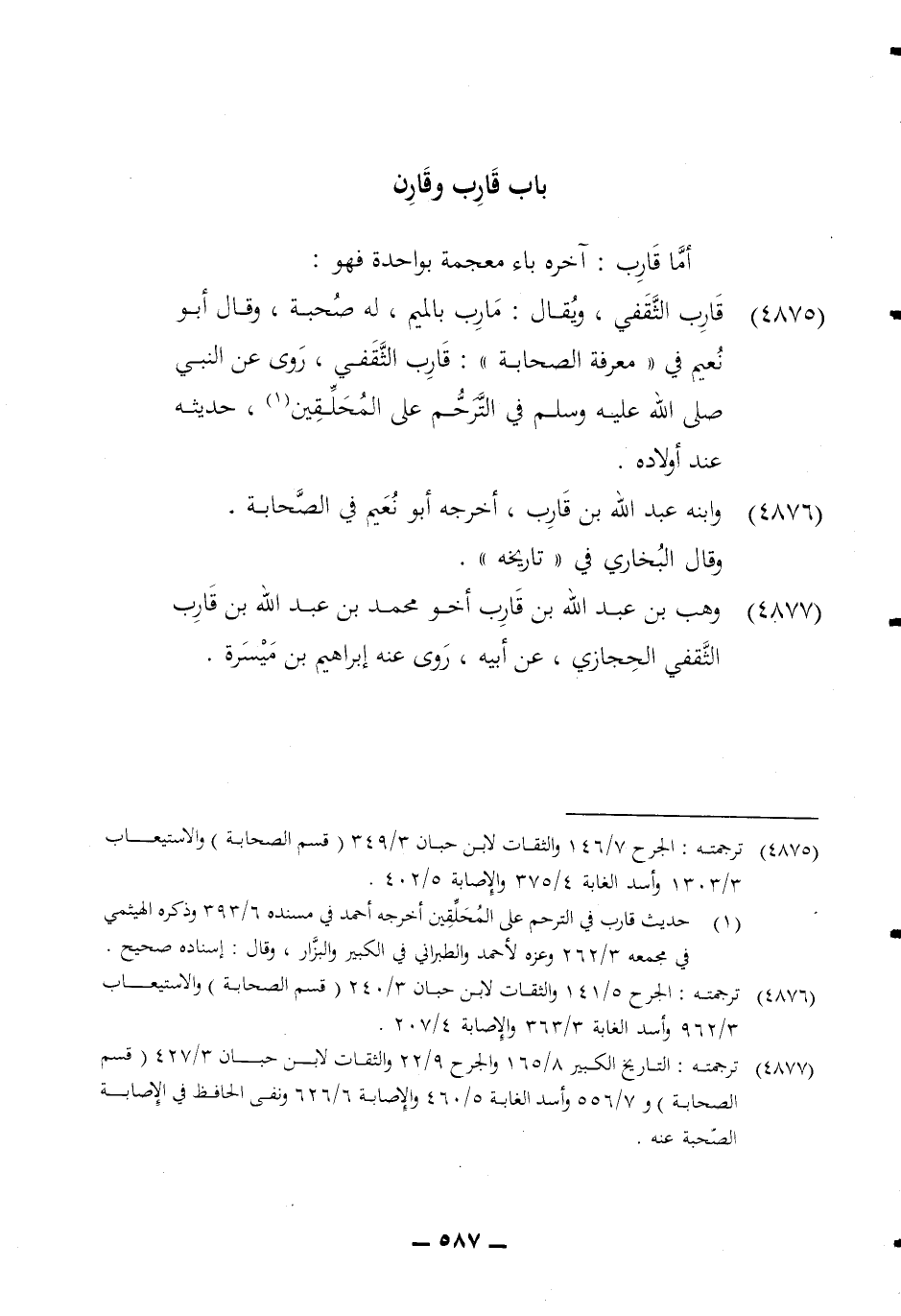 4876 - وَابْنه عبد الله بن قَارب أخرجه أَبُو نعيم فِي الصَّحَابَة وَقَالَ البُخَارِيّ فِي تَارِيخه