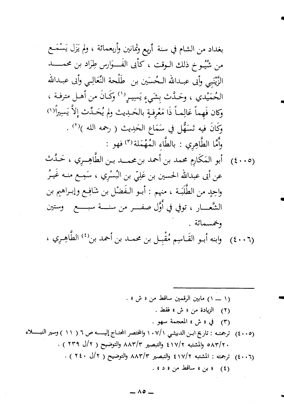 4005 - أَبُو المكارم مُحَمَّد بن أَحْمد بن مُحَمَّد بن الطاهري حدث عَن أَبى عبد الله الْحُسَيْن بن عَليّ بن البسري سمع مِنْهُ غير وَاحِد من الطّلبَة مِنْهُم أَبُو الْفضل بن شَافِع وَإِبْرَاهِيم بن الشعار توفّي فِي أول صفر من سنة سبع وَسِتِّينَ وَخَمْسمِائة