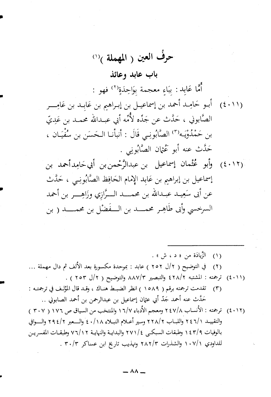 4011 - أَبُو حَامِد أَحْمد بن اسماعيل بن إِبْرَاهِيم بن عَابِد بن عَامر الصَّابُونِي حدث عَن جده لامه ابي عبد الله مُحَمَّد بن عدي بن حَمْدَوَيْه الصَّابُونِي قَالَ انبانا الْحسن بن سُفْيَان حدث عَنهُ أَبُو عُثْمَان الصَّابُونِي