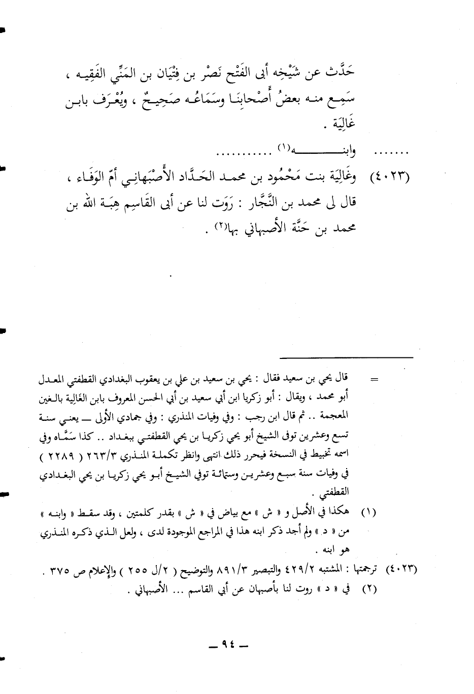 4023 - وغالية بنت مَحْمُود بن مُحَمَّد الْحداد الْأَصْبَهَانِيّ أم الْوَفَاء قَالَ لي مُحَمَّد بن النجار رَوَت لنا عَن أبي الْقَاسِم هبة الله بن مُحَمَّد بن حنة الْأَصْبَهَانِيّ بهَا