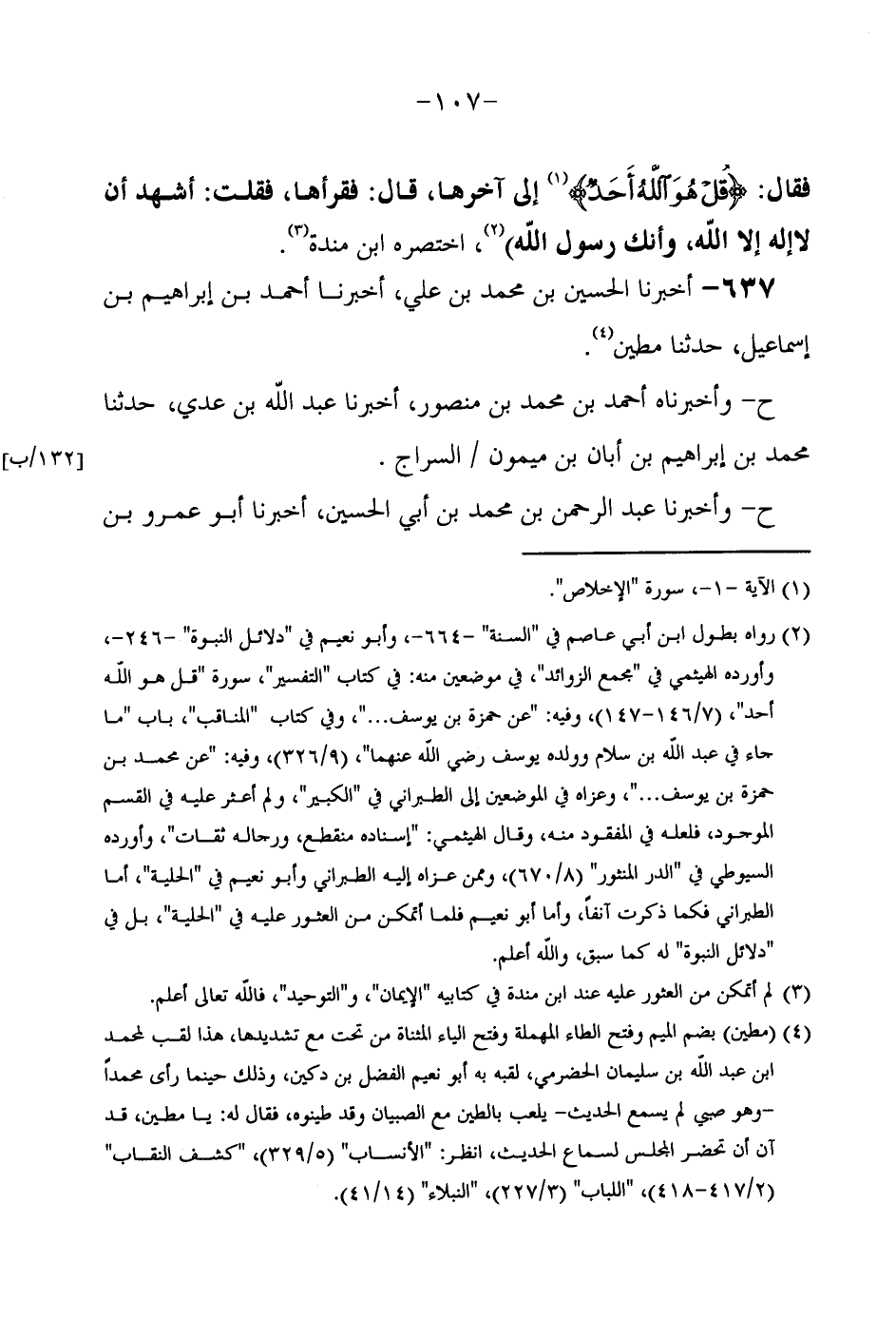 فَقَالَ {قل هُوَ الله أحد} إِلَى آخِرِهَا قَالَ فَقَرَأَهَا فَقُلْتُ أشهد أَن لاإله إِلَّا اللَّهُ وَأَنَّكَ رَسُولُ اللَّهِ) // رَوَاهُ بطول ابْن أبي عَاصِم فِي السّنة وَأَبُو نعيم فِي دَلَائِل النُّبُوَّة // اخْتَصَرَهُ ابْنُ مَنْدَهْ