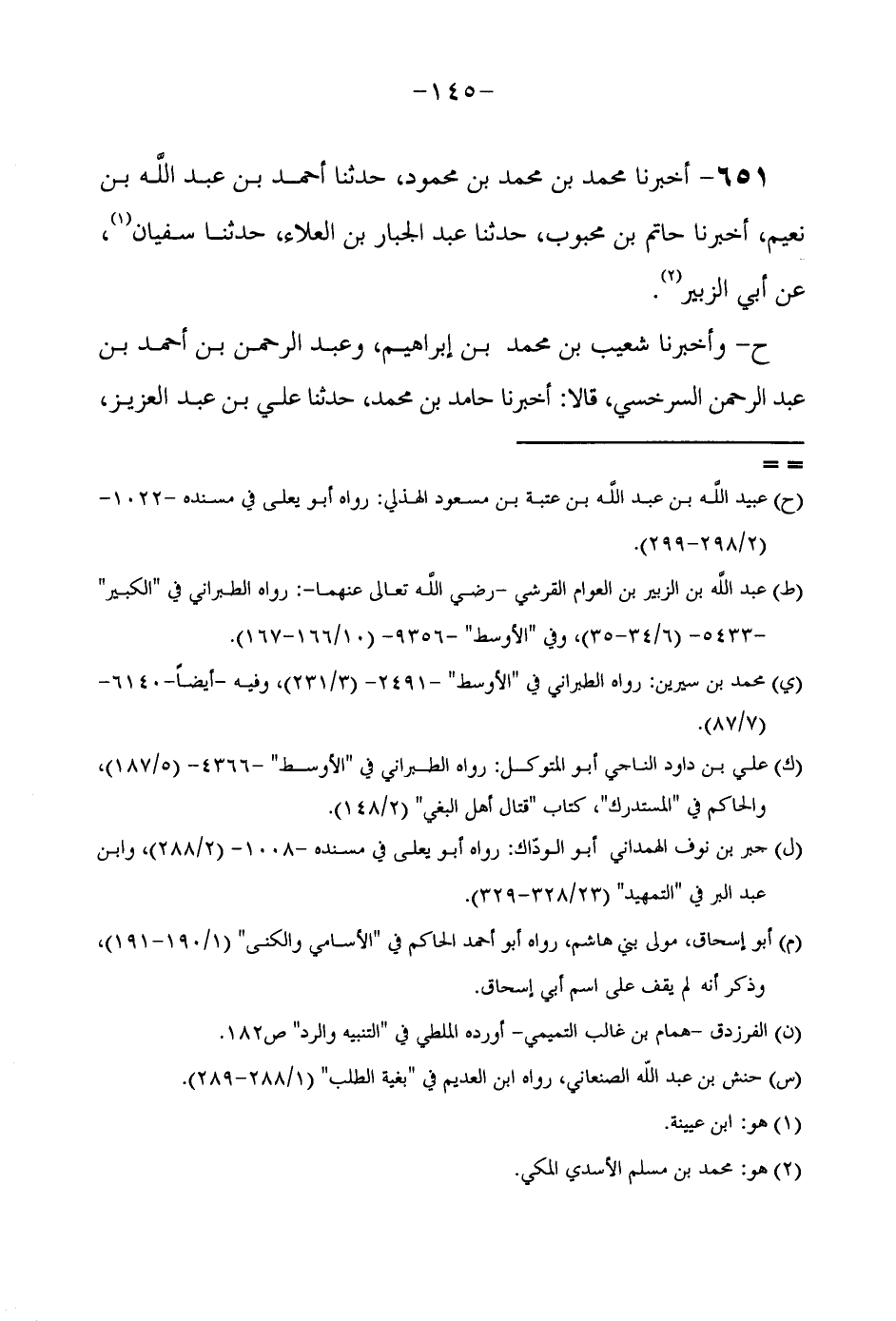 651 - أَخْبَرَنَا مُحَمَّدُ بْنُ مُحَمَّدِ بْنِ مَحْمُودٍ حَدَّثَنَا أَحْمَدُ بْنُ عَبْدِ اللَّهِ بْنِ نُعَيْمٍ أَخْبَرَنَا حَاتِمُ بْنَ مَحْبُوبٍ حَدَّثَنَا عَبْدُ الْجَبَّارِ بْنُ الْعَلَاءِ حَدَّثَنَا سُفْيَانُ عَنْ أَبِي الزُّبَيْرِ