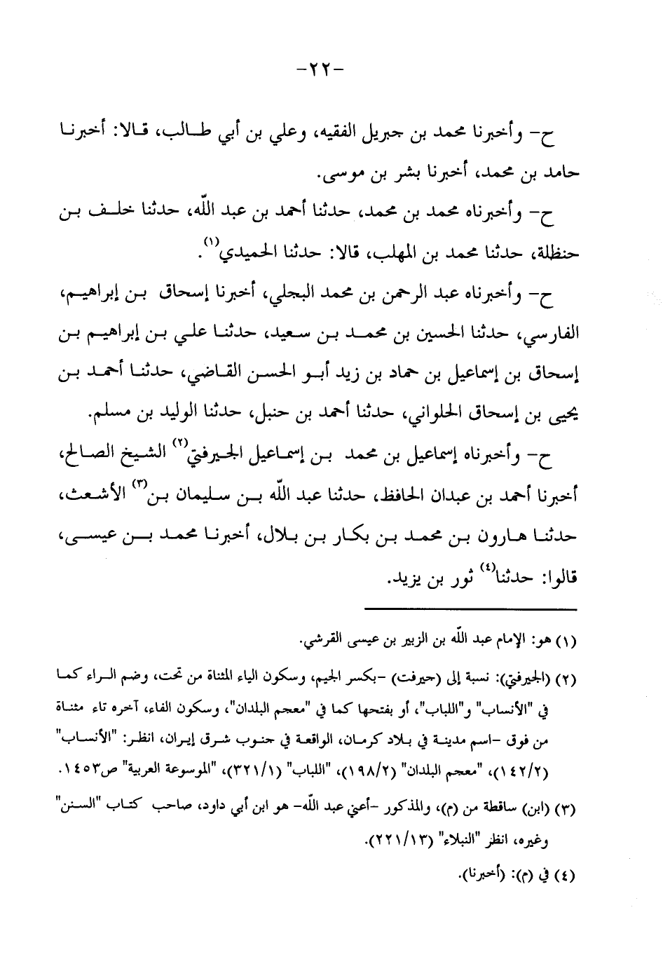ح وَأَخْبَرَنَاهُ إِسْمَاعِيلُ بْنُ مُحَمَّدِ بْنِ إِسْمَاعِيلَ الْجِيرُفْتِيُّ الشَّيْخُ الصَّالِحُ أَخْبَرَنَا أَحْمَدُ بْنُ عَبْدَانَ الْحَافِظُ حَدَّثَنَا عَبْدُ اللَّهِ بْنُ سُلَيْمَانَ بْنِ الْأَشْعَثِ حَدَّثَنَا هَارُونُ بْنُ مُحَمَّدِ بْنِ بَكَّارِ بْنِ بِلَالٍ أَخْبَرَنَا مُحَمَّدُ بْنُ عِيسَى قَالُوا حَدَّثَنَا ثَوْرُ بْنُ يَزِيدَ