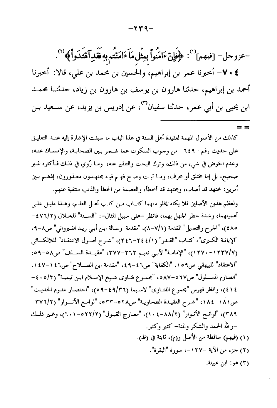 عَزَّ وَجَلَّ فِيهِمْ {فَإِنْ آمَنُوا بِمِثْلِ مَا آمَنْتُمْ بِهِ فَقَدِ اهتدوا}