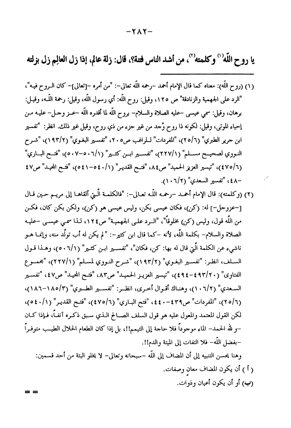 يَا رَوْحُ اللَّهِ وَكَلِمَتُهُ مَنْ أَشَدُّ النَّاسِ فِتْنَةً قَالَ زِلَّةُ عَالِمٍ إِذَا زَلَّ الْعَالِمُ زَلَّ بزلته