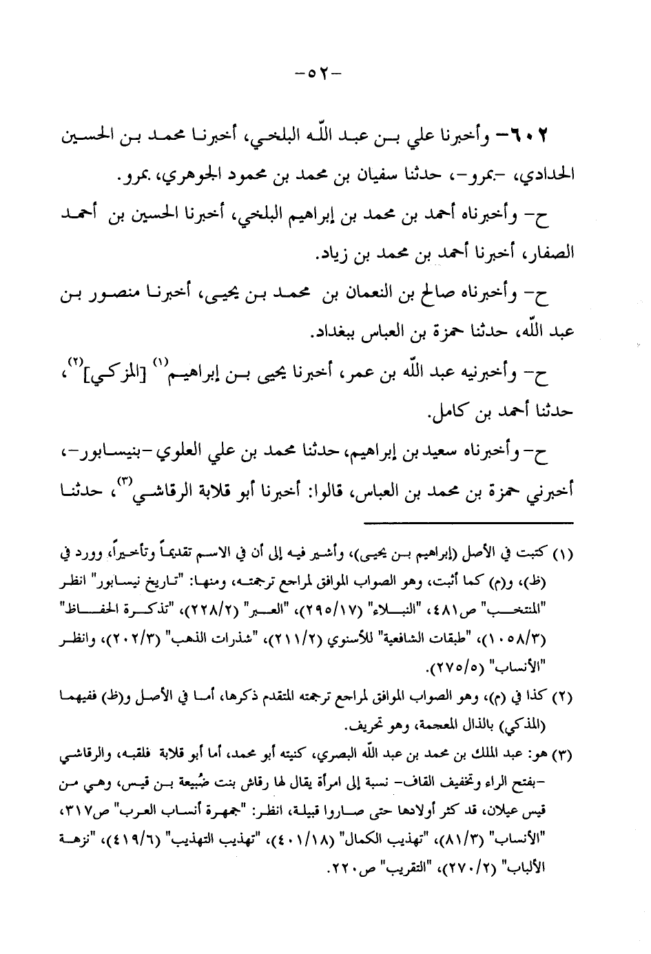 ح وَأَخْبَرَنَاهُ سَعِيدُ بْنُ إِبْرَاهِيمَ حَدَّثَنَا مُحَمَّدُ بْنُ عَلِيٍّ الْعَلَوِيُّ بِنَيْسَابُورَ أَخْبَرَنِي حَمْزَةُ بْنُ مُحَمَّدِ بْنِ الْعَبَّاسِ قَالُوا أخبرنَا أَبُو قلَابَة الرشاقي حَدَّثَنَا
