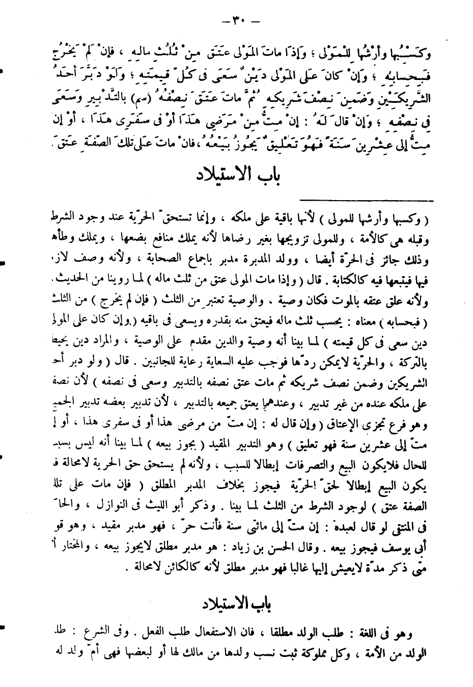 قَالَ: (وَلَوْ دَبَّرَ أَحَدُ الشَّرِيكَيْنِ وَضَمِنَ نِصْفَ شَرِيكِهِ ثُمَّ مَاتَ عَتَقَ نِصْفُهُ بِالتَّدْبِيرِ وَسَعَى فِي نِصْفِهِ) لِأَنَّ نِصْفَهُ عَلَى مِلْكِهِ عِنْدَهُ مِنْ غَيْرِ تَدْبِيرٍ، وَعِنْدَهُمَا يَعْتِقُ جَمِيعُهُ بِالتَّدْبِيرِ، لِأَنَّ تَدْبِيرَ بَعْضِهِ تَدْبِيرُ الْجَمِيعِ وَهُوَ فَرْعُ تَجَزِّي الْإِعْتَاقَ (وَإِنْ قَالَ لَهُ: إِنْ مِتُّ مِنْ مَرَضِي هَذَا أَوْ فِي سَفَرِي هَذَا، أَوْ إِنْ مِتُّ إِلَى عِشْرِينَ سَنَةٍ فَهُوَ تَعْلِيقٌ) ، وَهُوَ التَّدْبِيرُ الْمُقَيَّدُ (يَجُوزُ بَيْعُهُ) لِمَا بَيَّنَّا أَنَّهُ لَيْسَ بِسَبَبٍ لِلْحَالِ فَلَا يَكُونُ الْبَيْعُ وَالتَّصَرُّفَاتُ إِبْطَالًا لِلسَّبَبِ، وَلِأَنَّهُ لَمْ يَسْتَحِقَّ حَقَّ الْحُرِّيَّةِ لَا مَحَالَةَ فَأَنْ يَكُونَ الْبَيْعُ إِبْطَالًا لِحَقِّ الْحُرِّيَّةِ فَيَجُوزُ بِخِلَافِ الْمُدَبَّرِ الْمُطْلَقِ، (فَإِنْ مَاتَ عَلَى تِلْكَ الصِّفَةِ عَتَقَ) لِوُجُودِ الشَّرْطِ مِنَ الثُّلُثِ لِمَا بَيَّنَّا. وَذَكَرَ أَبُو اللَّيْثِ فِي النَّوَازِلِ، وَالْحَاكِمُ فِي الْمُنْتَقَى: لَوْ قَالَ لِعَبْدِهِ: إِنْ مِتُّ إِلَى مِائَتَيْ سَنَةٍ فَأَنْتَ حُرٌّ، فَهُوَ مُدَبَّرٌ مُقَيَّدٌ، وَهُوَ قَوْلُ أَبِي يُوسُفَ فَيَجُوزُ بَيْعُهُ. وَقَالَ الْحَسَنُ بْنُ زِيَادٍ: هُوَ مُدَبَّرٌ مُطْلَقٌ لَا يَجُوزُ بَيْعُهُ، وَالْمُخْتَارُ أَنَّهُ مَتَى ذَكَرَ مُدَّةً لَا يَعِيشُ إِلَيْهَا غَالِبًا فَهُوَ مُدَبَّرٌ مُطْلَقٌ لِأَنَّهُ كَالْكَائِنِ لَا مَحَالَةَ.