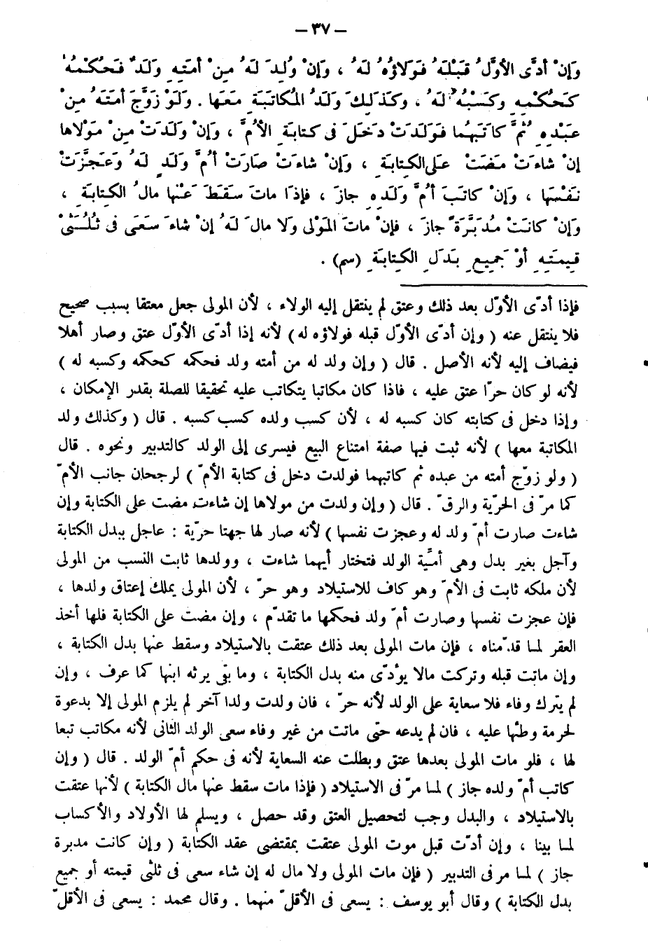 وَإِنْ أَدَّى الْأَوَّلُ قَبْلَهُ فَوَلَاؤُهُ لَهُ، وَإِنْ وُلِدَ لَهُ مِنْ أَمَتِهِ وَلَدٌ فَحُكْمُهُ كَحُكْمِهِ وَكَسْبُهُ لَهُ، وَكَذَلِكَ وَلَدُ الْمُكَاتَبَةِ مَعَهَا وَلَوْ زَوَّجَ أَمَتَهُ مِنْ عَبْدِهِ ثُمَّ كَاتَبَهُمَا فَوَلَدَتْ دَخَلَ فِي كِتَابَةِ الْأُمِّ، وَإِنْ وَلَدَتْ مِنْ مَوْلَاهَا إِنْ شَاءَتْ مَضَتْ عَلَى الْكِتَابَةِ، وَإِنْ شَاءَتْ صَارَتْ أُمَّ وَلَدٍ لَهُ وَعَجَّزَتْ نَفْسَهَا، وَإِنْ كَاتَبَ أُمَّ وَلَدِهِ جَازَ، فَإِذَا مَاتَ سَقَطَ عَنْهَا مَالُ الْكِتَابَةِ، وَإِنْ كَانَتْ مُدَبَّرَةً جَازَ، فَإِنْ مَاتَ الْمَوْلَى وَلَا مَالَ لَهُ إِنْ شَاءَ سَعَى فِي ثُلُثَيْ قِيمَتِهِ أَوْ جَمِيعِ بَدَلِ الْكِتَابَةِ (سم) .