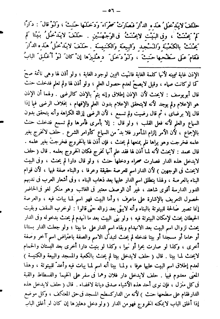 قَالَ: (حَلَفَ لَا يَدْخُلُ هَذِهِ الدَّارَ فَصَارَتْ صَحْرَاءَ وَدَخَلَهَا حَنِثَ، وَلَوْ قَالَ دَارًا لَمْ يَحْنَثْ، وَفِي الْبَيْتِ لَا يَحْنَثُ فِي الْوَجْهَيْنِ) لِأَنَّ الدَّارَ اسْمٌ لِلْعَرْصَةِ حَقِيقَةً وَعُرْفًا، وَالْبِنَاءُ صِفَةٌ فِيهَا، لِأَنَّ قِوَامَ الْبِنَاءِ بِالْعَرْصَةِ، وَلِهَذَا يَنْطَلِقُ اسْمُ الدَّارِ عَلَيْهَا بَعْدَ ذَهَابِ الْبِنَاءِ، وَفِي أَشْعَارِ الْعَرَبِ فِي نَدْبِهِمُ الدُّورَ الدَّارِسَةَ أَقْوَى شَاهِدٍ، غَيْرَ أَنَّ الْوَصْفَ مُعْتَبَرٌ فِي الْغَائِبِ وَهُوَ مُنْكَرُ لَغْوٌ فِي الْحَاضِرِ لِحُصُولِ التَّعْرِيفِ بِالْإِشَارَةِ عَلَى مَا عُرِفَ، وَأَمَّا الْبَيْتُ فَهُوَ اسْمٌ لِمَا يُبَاتُ فِيهِ، وَالْعَرْصَةُ إِنَّمَا تَصِيرُ صَالِحَةً لِلْبَيْتُوتَةِ بِالْبِنَاءِ وَأَنَّهُ لَا يَبْقَى بَعْدَ زَوَالِهِ حَتَّى قَالُوا: لَوْ خَرِبَ السَّقْفُ وَبَقِيَتِ الْحِيطَانُ يَحْنَثُ لِإِمْكَانِ الْبَيْتُوتَةِ فِيهِ، وَلَوْ بُنِيَ الْبَيْتُ بَعْدَ مَا انْهَدَمَ لَمْ يَحْنَثْ بِدُخُولِهِ. وَفِي الدَّارِ يَحْنَثُ لِزَوَالِ اسْمِ الْبَيْتِ بَعْدَ الِانْهِدَامِ، وَبَقَاءِ اسْمِ الدَّارِ عَلَى مَا بَيَّنَّا، وَلَوْ جُعِلَتِ الدَّارُ بُسْتَانًا أَوْ حَمَّامًا أَوْ مَسْجِدًا أَوْ بَيْتًا فَدَخَلَهُ لَمْ يَحْنَثْ لِتَبَدُّلِ الِاسْمِ وَالصِّفَةِ بِاعْتِرَاضِ اسْمٍ آخَرَ وَصِفَةٍ أُخْرَى، وَكَذَا لَوْ صَارَتْ بَحْرًا أَوْ نَهْرًا، وَكَذَا لَوْ بُنِيَتْ دَارًا أُخْرَى بَعْدَ الْبُسْتَانِ وَالْحَمَّامِ لَا يَحْنَثُ لِمَا بَيَّنَّا.