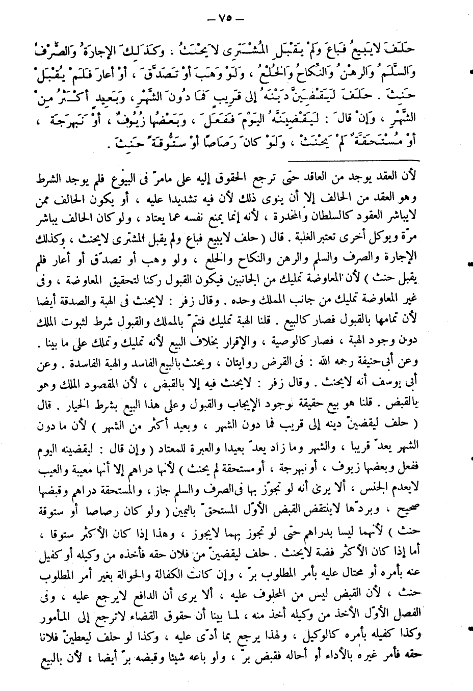 قَالَ: (حَلَفَ لَا يَبِيعُ فَبَاعَ وَلَمْ يَقْبَلِ الْمُشْتَرِي لَا يَحْنَثُ، وَكَذَلِكَ الْإِجَارَةُ وَالصَّرْفُ وَالسَّلَمُ وَالرَّهْنُ وَالنِّكَاحُ وَالْخُلْعُ، وَلَوْ وَهَبَ أَوْ تَصَدَّقَ أَوْ أَعَارَ فَلَمْ يُقْبَلْ حَنِثَ) لِأَنَّ الْمُعَاوَضَةَ تَمْلِيكٌ مِنَ الْجَانِبَيْنِ فَيَكُونُ الْقَبُولُ رُكْنًا لِتَحْقِيقِ الْمُعَاوَضَةِ، وَفِي غَيْرِ الْمُعَاوَضَةِ تَمْلِيكٌ مِنْ جَانِبِ الْمُمَلِّكِ وَحْدَهُ. وَقَالَ زُفَرُ: لَا يَحْنَثُ فِي الْهِبَةِ وَالصَّدَقَةِ أَيْضًا لِأَنَّ تَمَامَهَا بِالْقَبُولِ فَصَارَ كَالْبَيْعِ. قُلْنَا: الْهِبَةُ تَمْلِيكٌ فَتُتِمُّ بِالْمُمَلِّكِ وَالْقَبُولُ شَرْطٌ لِثُبُوتِ الْمِلْكِ دُونَ وُجُودِ الْهِبَةِ، فَصَارَ كَالْوَصِيَّةِ وَالْإِقْرَارِ بِخِلَافِ الْبَيْعِ لِأَنَّهُ تَمْلِيكٌ وَتَمَلُّكٌ عَلَى مَا بَيَّنَّا. وَعَنْ أَبِي حَنِيفَةَ - رَحِمَهُ اللَّهُ -: فِي الْقَرْضِ رِوَايَتَانِ، وَيَحْنَثُ بِالْبَيْعِ الْفَاسِدِ وَالْهِبَةِ الْفَاسِدَةِ. وَعَنْ أَبِي يُوسُفَ أَنَّهُ لَا يَحْنَثُ. وَقَالَ زُفَرُ: لَا يَحْنَثُ فِيهِ إِلَّا بِالْقَبْضِ، لِأَنَّ الْمَقْصُودَ الْمِلْكُ وَهُوَ بِالْقَبْضِ. قُلْنَا: هُوَ بَيْعٌ حَقِيقَةً لِوُجُودِ الْإِيجَابِ وَالْقَبُولِ وَعَلَى هَذَا الْبَيْعُ بِشَرْطِ الْخِيَارِ.