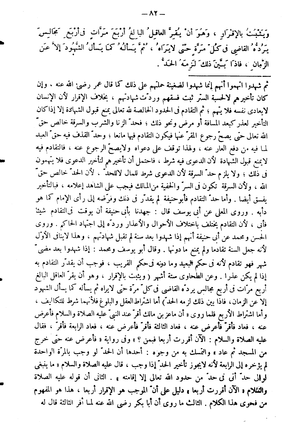 وَأَمَّا حَدُّ التَّقَادُمِ فَأَبُو حَنِيفَةَ لَمْ يُقَدِّرْ فِي ذَلِكَ وَفَوَّضَهُ إِلَى رَأْيِ الْإِمَامِ كَمَا هُوَ دَأْبُهُ. وَرَوَى الْمُعَلَّى عَنْ أَبِي يُوسُفَ قَالَ: جَهِدْنَا بِأَبِي حَنِيفَةَ أَنْ يُوَقِّتَ فِي التَّقَادُمِ شَيْئًا فَأَبَى، لِأَنَّ التَّقَادُمَ يَخْتَلِفُ بِاخْتِلَافِ الْأَحْوَالِ وَالْأَعْذَارِ وَرَدَّهُ إِلَى اجْتِهَادِ الْحَاكِمِ. وَرَوَى الْحَسَنُ وَمُحَمَّدٌ عَنْ أَبِي حَنِيفَةَ أَنَّهُمْ إِذَا شَهِدُوا بَعْدَ سَنَةٍ لَمْ تُقْبَلْ شَهَادَتُهُمْ، وَهَذَا لَا يُنَافِي الْأَوَّلَ لِأَنَّهُ جَعَلَ السَّنَةَ تَقَادُمًا وَلَمْ يَمْنَعْ مَا دُونَهَا. وَقَالَ أَبُو يُوسُفَ وَمُحَمَّدٌ: إِذَا شَهِدُوا بَعْدَ مُضِيِّ شَهْرٍ فَهُوَ تَقَادُمٌ لِأَنَّهُ فِي حُكْمِ الْبَعِيدِ وَمَا دُونَهُ فِي حُكْمِ الْقَرِيبِ، فَوَجَبَ أَنْ يُقَدِّرَ التَّقَادُمَ بِهِ إِذَا لَمْ يَكُنْ عُذْرًا. وَعَنِ الطَّحَاوِيِّ سِتَّةُ أَشْهُرٍ.