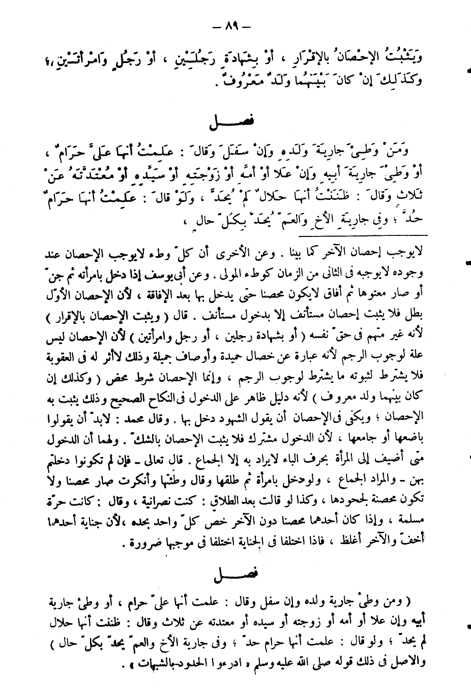 ـــــــــــــــــــــــــــــQلَا يُوجِبُ إِحْصَانَ الْآخَرِ كَمَا بَيَّنَّا. وَعَنِ الْأُخْرَى أَنَّ كُلَّ وَطْءٍ لَا يُوجِبُ الْإِحْصَانَ عِنْدَ وُجُودِهِ لَا يُوجِبُهُ فِي الثَّانِي مِنَ الزَّمَانِ كَوَطْءِ الْمَوْلَى. وَعَنْ أَبِي يُوسُفَ إِذَا دَخَلَ بِامْرَأَتِهِ ثُمَّ جُنَّ أَوْ صَارَ مَعْتُوهًا ثُمَّ أَفَاقَ لَا يَكُونُ مُحْصَنًا حَتَّى يَدْخُلَ بِهَا بَعْدَ الْإِفَاقَةِ، لِأَنَّ الْإِحْصَانَ الْأَوَّلَ بَطَلَ فَلَا يَثْبُتُ إِحْصَانٌ مُسْتَأْنَفٌ إِلَّا بِدُخُولٍ مُسْتَأْنَفٍ.
