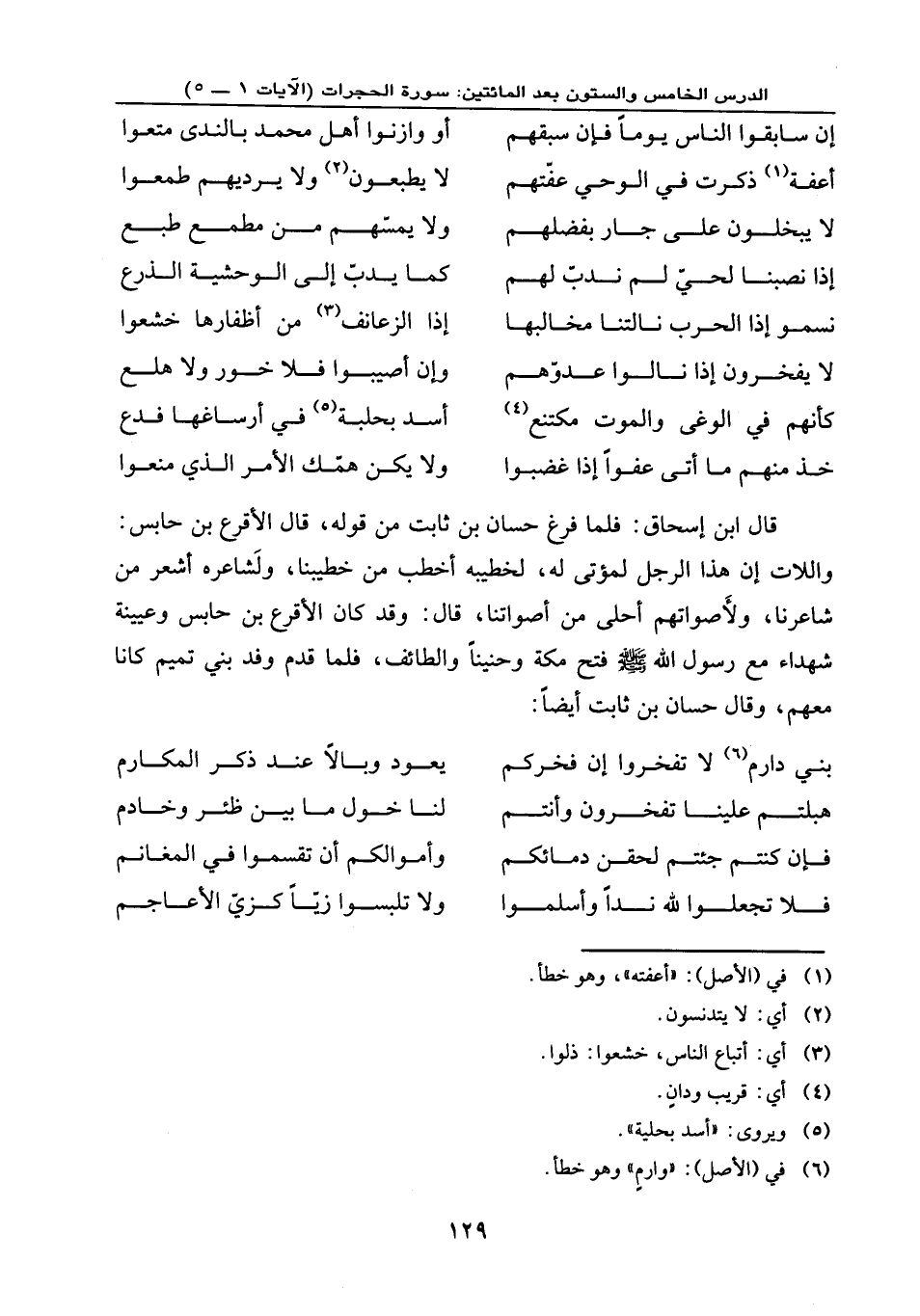 قال ابن إسحاق: فلما فرغ حسان بن ثابت من قوله قال الأقرع بن حابس واللات إن هذا الرجل لمؤتى له، لخطيبه أخطب من خطيبنا، ولشاعره أشعر من شاعرنا، ولأصواتهم أحلى من أصواتنا، قال: وقد كان الأقرع بن حابس وعيينة شهداء مع رسول الله - صلى الله عليه وسلم - فتح مكة وحنينًا والطائف، فلما قدم وفد بني تميم كانا معهم، وقال حسان بن ثابت أيضًا: