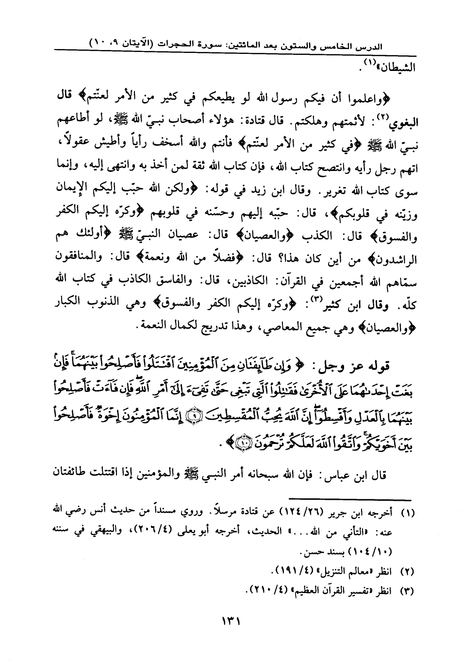 الْمُقْسِطِينَ (9) إِنَّمَا الْمُؤْمِنُونَ إِخْوَةٌ فَأَصْلِحُوا بَيْنَ أَخَوَيْكُمْ وَاتَّقُوا اللَّهَ لَعَلَّكُمْ تُرْحَمُونَ (10) } .