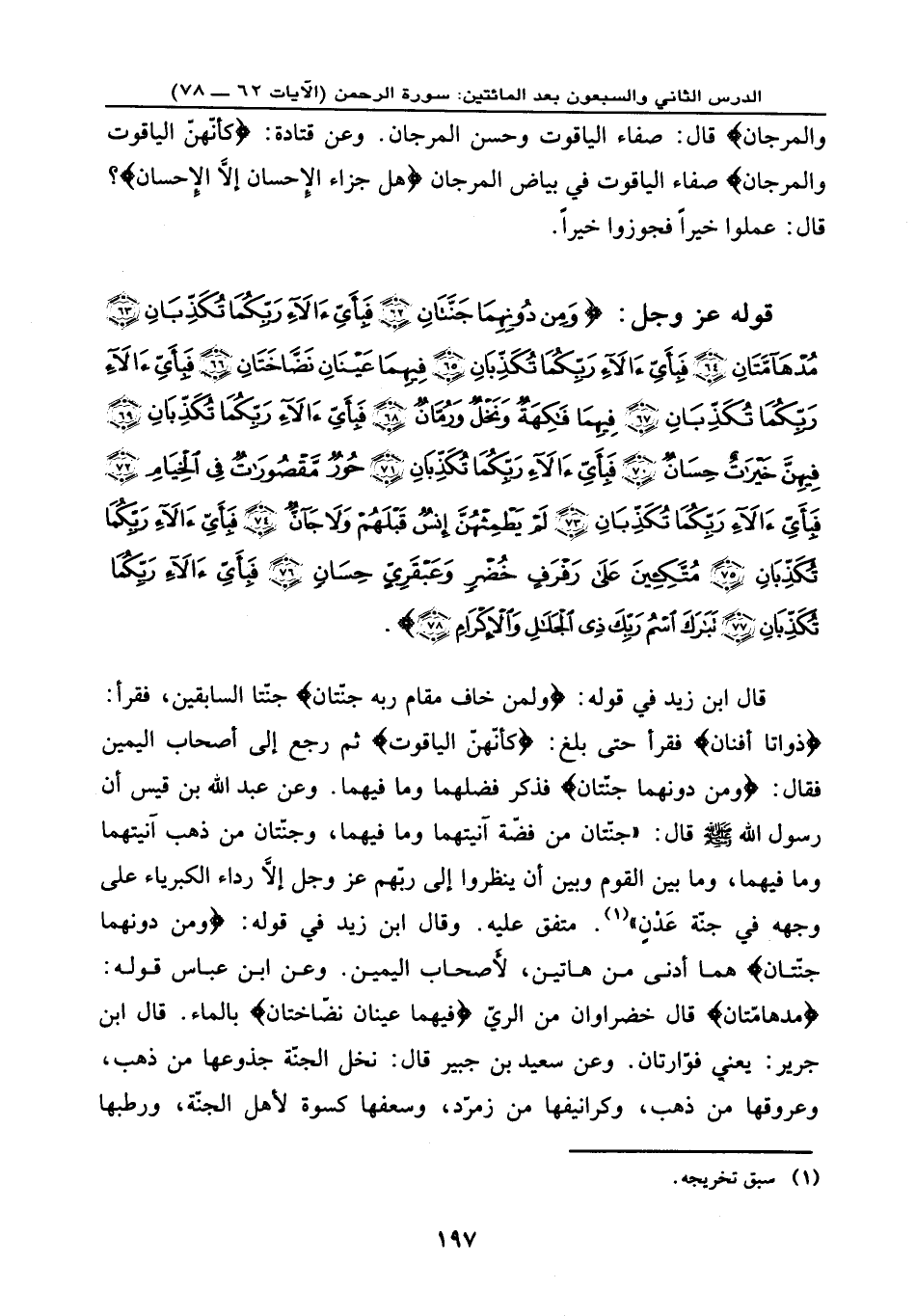 وَالْمَرْجَانُ} صفاء الياقوت في بياض المرجان {هَلْ جَزَاء الْإِحْسَانِ إِلَّا الْإِحْسَانُ} ؟ قال: عملوا خيرًا فجوزوا خيرًا.
