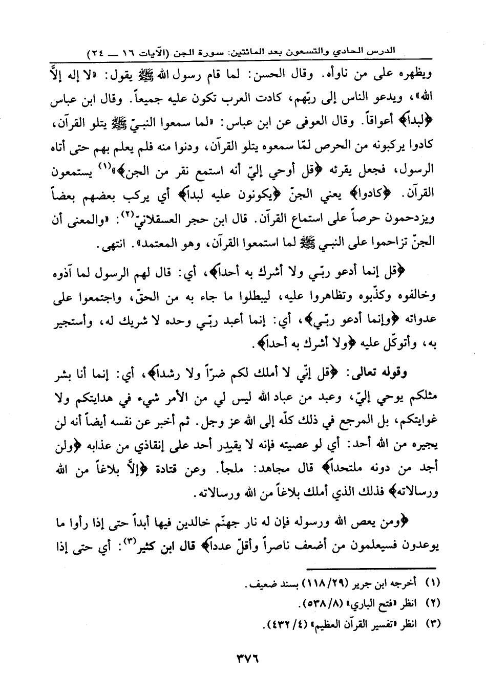 {وَمَن يَعْصِ اللَّهَ وَرَسُولَهُ فَإِنَّ لَهُ نَارَ جَهَنَّمَ خَالِدِينَ فِيهَا أَبَداً * حَتَّى إِذَا رَأَوْا مَا يُوعَدُونَ فَسَيَعْلَمُونَ مَنْ أَضْعَفُ نَاصِراً وَأَقَلُّ عَدَداً} ، قال ابن كثير: أي: حتى إذا