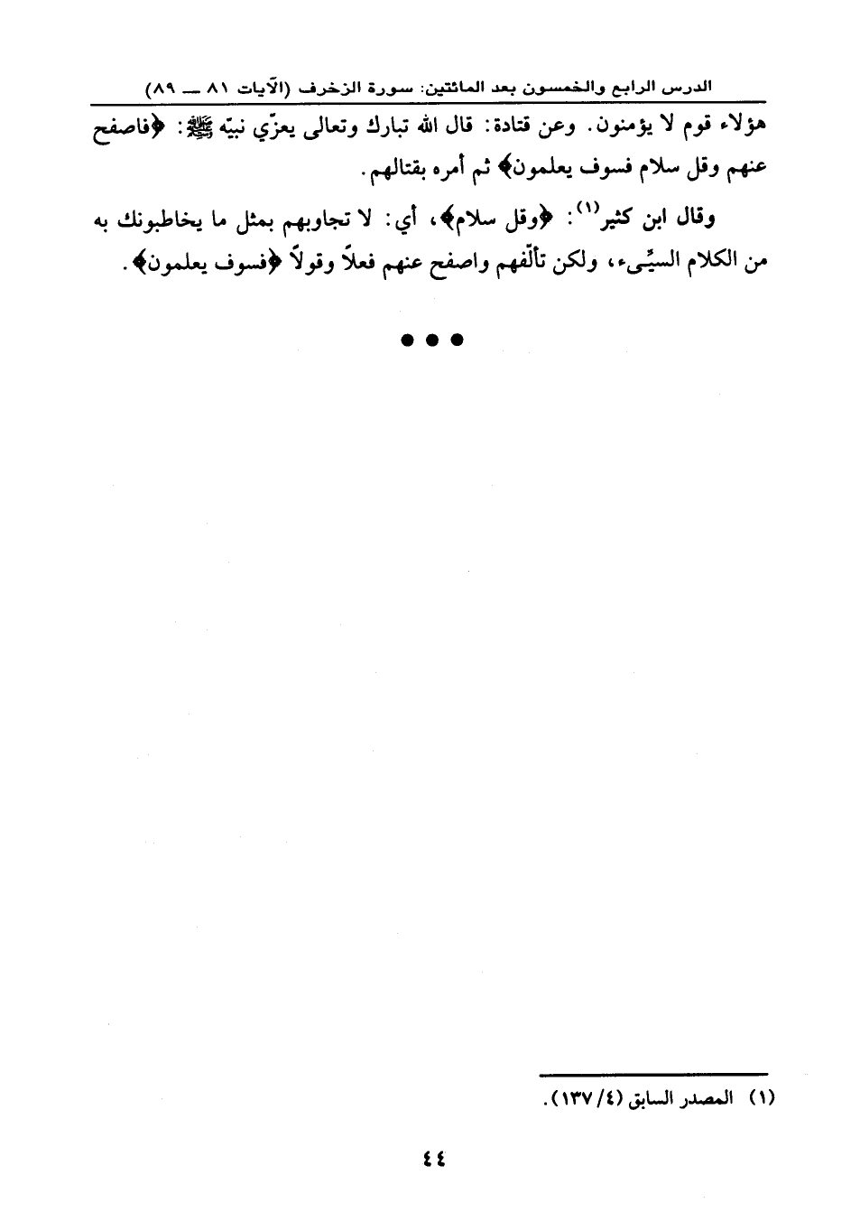 هؤلاء قوم لا يؤمنون. وعن قتادة: قال الله تبارك وتعالى يعزي نبيه - صلى الله عليه وسلم - {فَاصْفَحْ عَنْهُمْ وَقُلْ سَلَامٌ فَسَوْفَ يَعْلَمُونَ} ثم أمره بقتالهم.