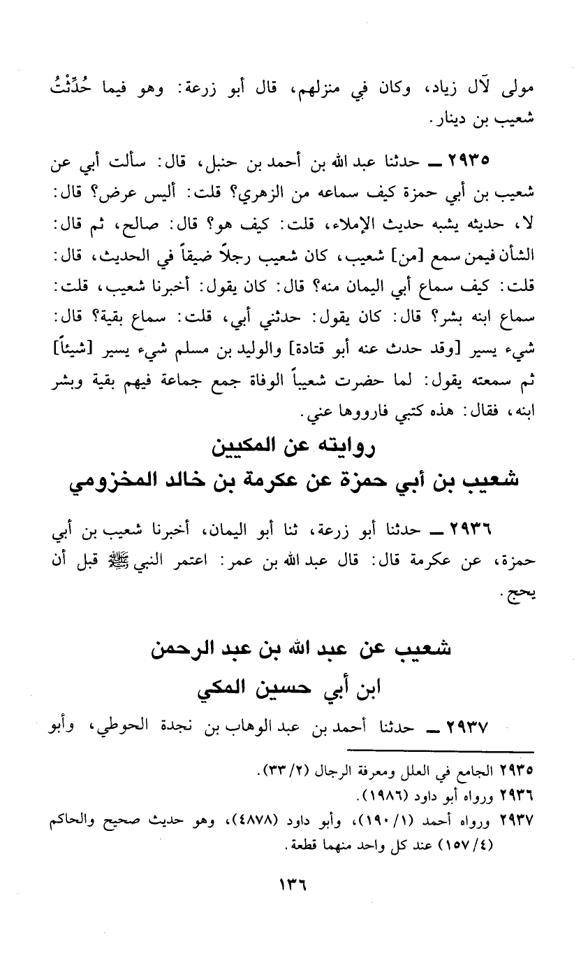 §رِوَايَتُهُ عَنِ الْمَكِّيِّينَ شُعَيْبِ بْنِ أَبِي حَمْزَةَ عَنْ عِكْرِمَةَ بْنِ خَالِدٍ الْمَخْزُومِيِّ