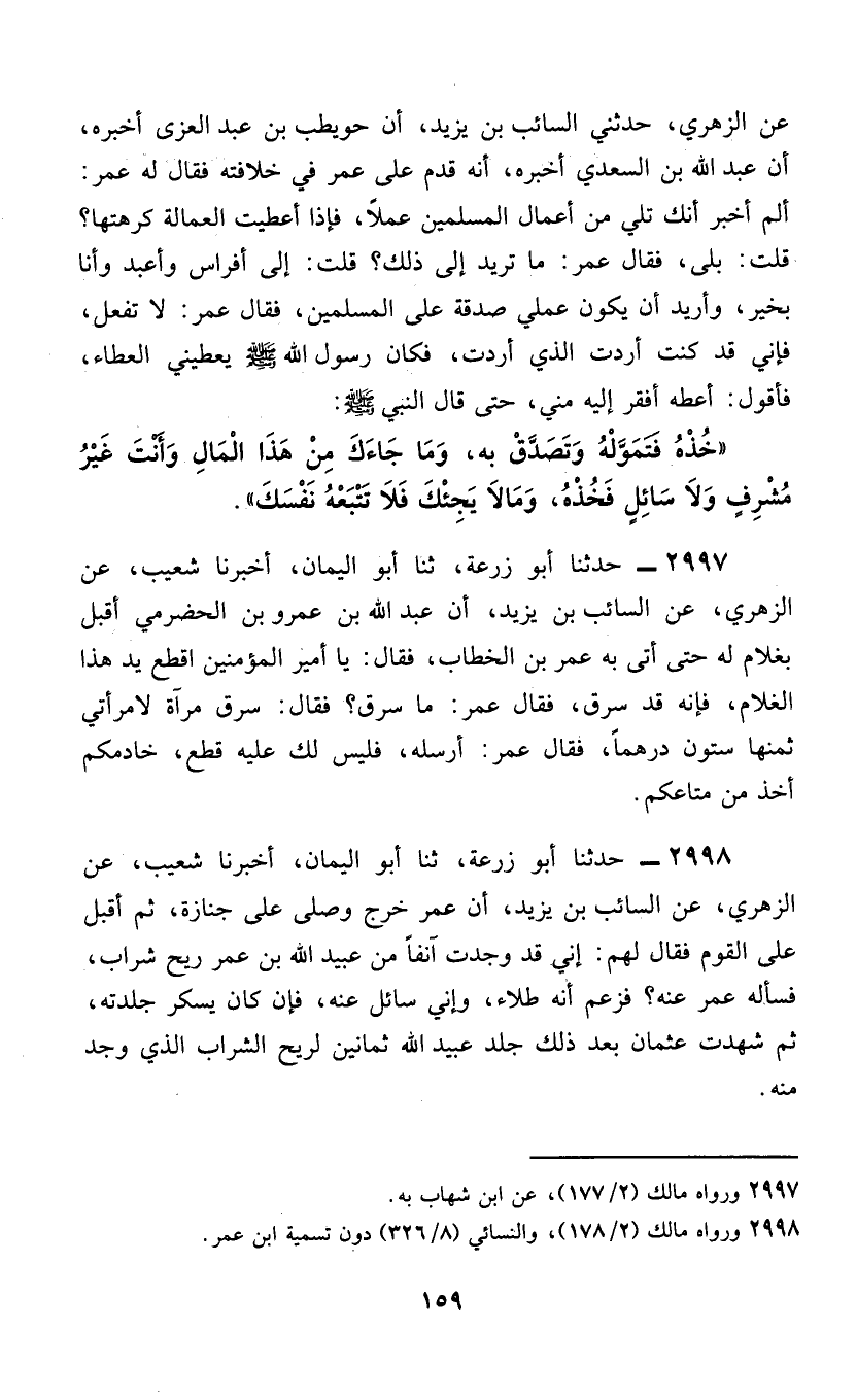 2997 - حَدَّثَنَا أَبُو زُرْعَةَ، ثَنَا أَبُو الْيَمَانِ، أَخْبَرَنَا شُعَيْبٌ، عَنِ الزُّهْرِيِّ، عَنِ السَّائِبِ بْنِ يَزِيدَ، أَنَّ عَبْدَ اللَّهِ بْنَ عَمْرِو بْنِ الْحَضْرَمِيِّ، أَقْبَلَ بِغُلَامٍ لَهُ حَتَّى أَتَى بِهِ عُمَرَ بْنَ الْخَطَّابِ، فَقَالَ: «يَا أَمِيرَ الْمُؤْمِنِينَ اقْطَعْ يَدَ هَذَا الْغُلَامِ، فَإِنَّهُ قَدْ سَرَقَ» ، فَقَالَ عُمَرُ: «مَا سَرَقَ» ؟ فَقَالَ: «سَرَقَ مِرْآةً لِامْرَأَتِي ثَمَنُهَا سِتُّونَ دِرْهَمًا» ، فَقَالَ عُمَرُ: «§أَرْسِلْهُ، فَلَيْسَ لَكَ عَلَيْهِ قَطْعٌ، خَادِمُكُمْ أَخَذَ مِنْ مَتَاعِكُمْ»