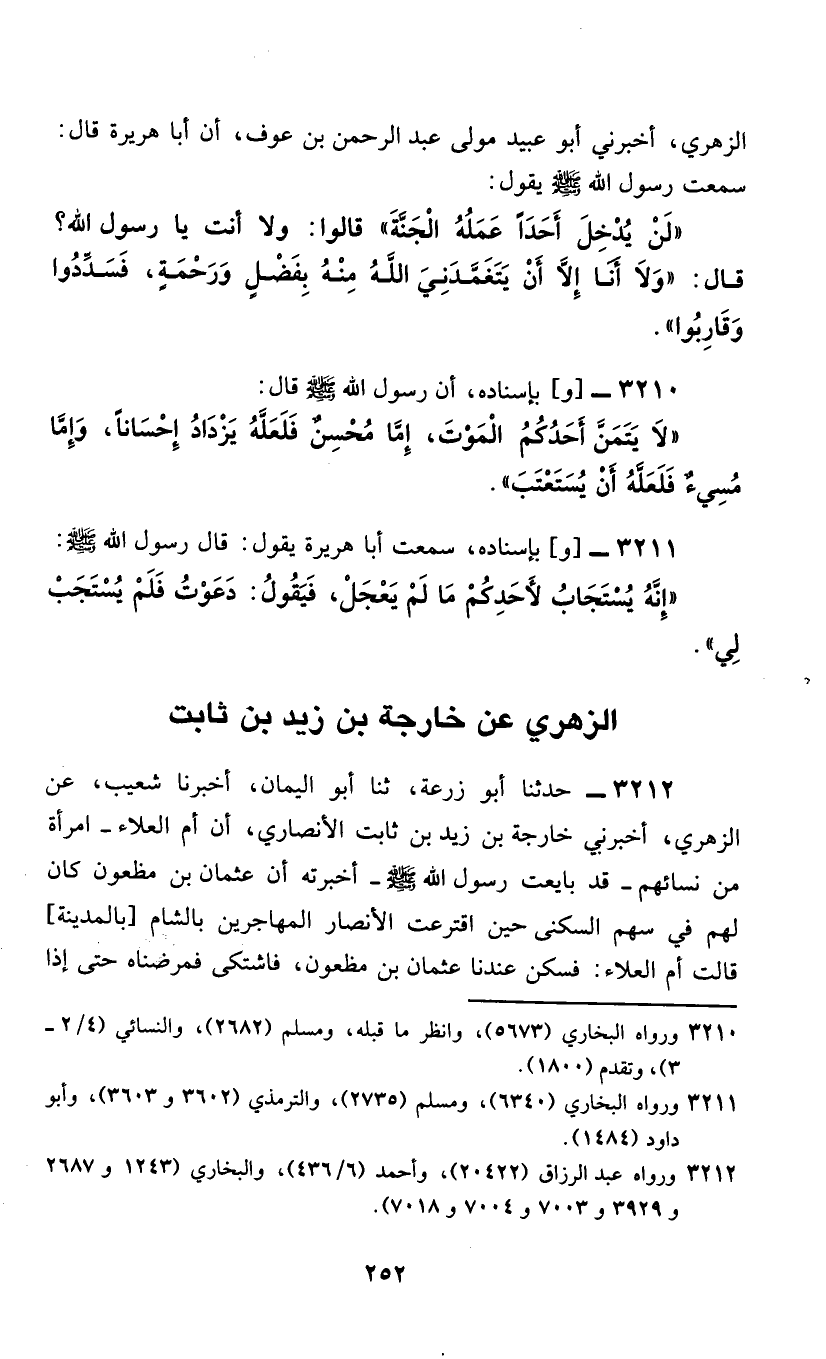 §الزُّهْرِيُّ، عَنْ خَارِجَةَ بْنِ زَيْدِ بْنِ ثَابِتٍ