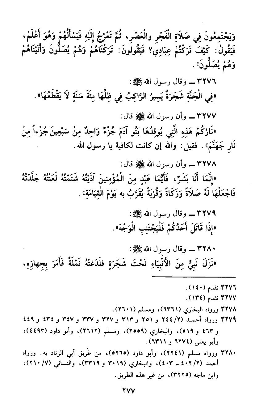 3276 - وَقَالَ رَسُولُ اللَّهِ صَلَّى اللهُ عَلَيْهِ وَسَلَّمَ: §«فِي الْجَنَّةِ شَجَرَةٌ يَسِيرُ الرَّاكِبُ فِي ظِلِّهَا مِئَةَ سَنَةٍ لَا يَقْطَعُهَا»