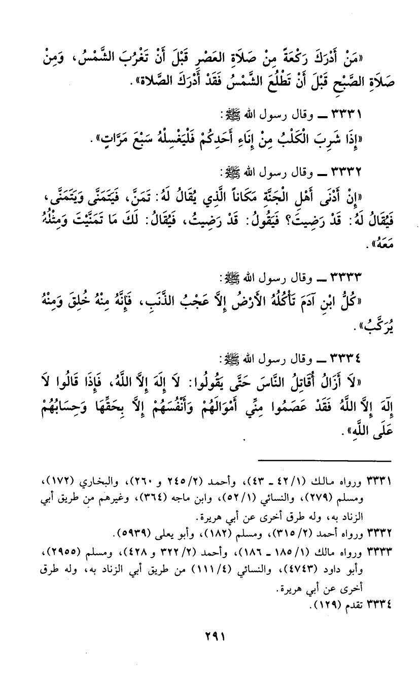 3334 - وَقَالَ رَسُولُ اللَّهِ صَلَّى اللهُ عَلَيْهِ وَسَلَّمَ: " §لَا أَزَالُ أُقَاتِلُ النَّاسَ حَتَّى يَقُولُوا: لَا إِلَهُ إِلَّا اللَّهُ، فَإِذَا قَالُوا لَا إِلَهُ إِلَّا اللَّهُ؛ فَقَدْ عَصَمُوا مِنِّي أَمْوَالَهُمْ وَأَنْفُسَهُمْ إِلَّا بِحَقِّهَا وَحِسَابُهُمْ عَلَى اللَّهِ "