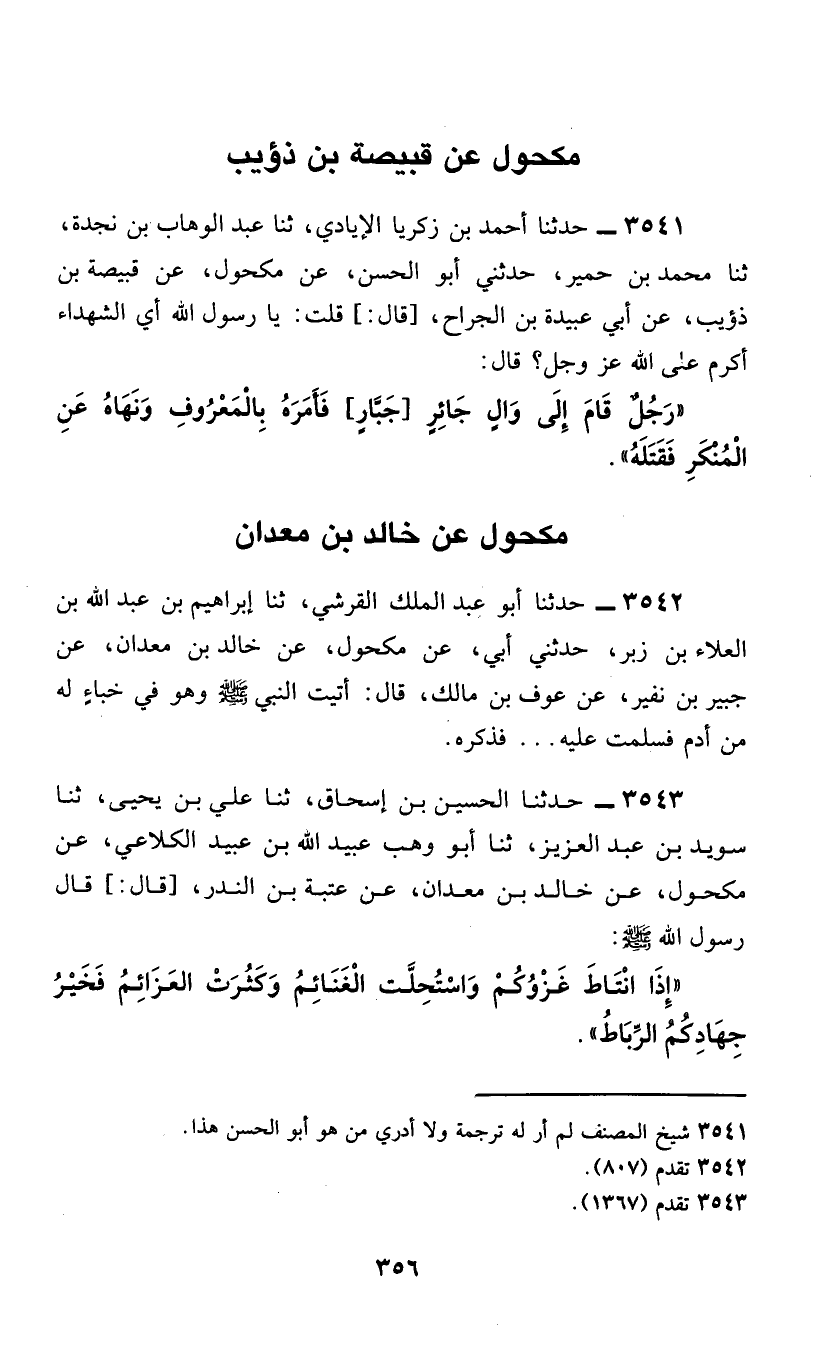 §مَكْحُولٌ عَنْ خَالِدِ بْنِ مَعْدَانَ