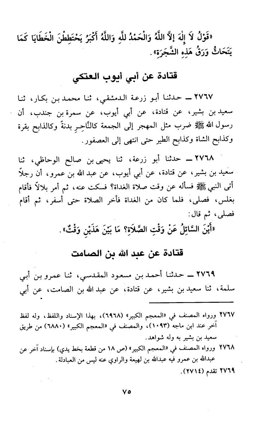 §قَتَادَةُ، عَنْ عَبْدِ اللَّهِ بْنِ الصَّامِتِ