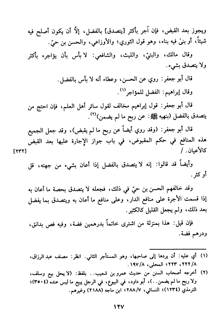 قَالَ أَبُو جَعْفَر قَول إِبْرَاهِيم مُخَالف لقَوْل سَائِر أهل الْعلم فَإِن احْتج من يتَصَدَّق بِالْفَضْلِ بنهيه صلى الله عَلَيْهِ وَسلم عَن ربح مَا لم يضمن