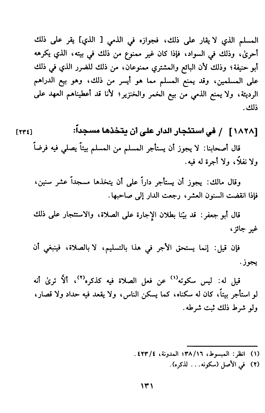 1828 - فِي اسْتِئْجَار الدَّار على أَن يتخذها مَسْجِدا