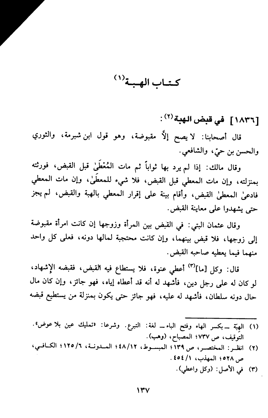قَالَ أَصْحَابنَا لَا يَصح إِلَّا مَقْبُوضَة وَهُوَ قَول ابْن شبْرمَة وَالثَّوْري وَالْحسن بن حَيّ وَالشَّافِعِيّ
