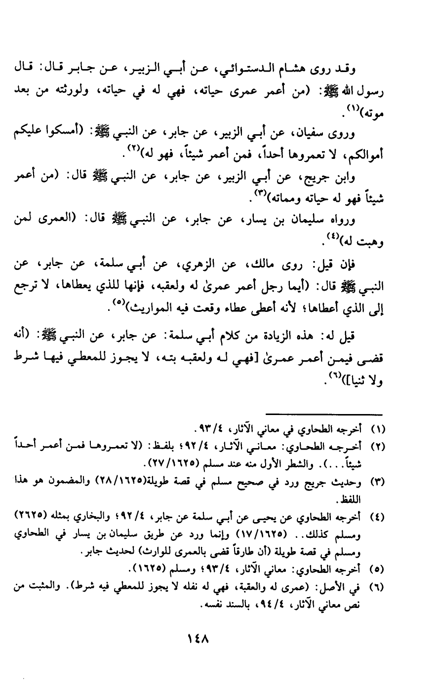 وَقد روى هِشَام الدستوَائي عَن أبي الزبير عَن جَابر قَالَ قَالَ رَسُول الله صلى الله عَلَيْهِ وَسلم من أعمر عمرى حَيَاته فَهِيَ لَهُ فِي حَيَاته ولورثته من بعد مَوته