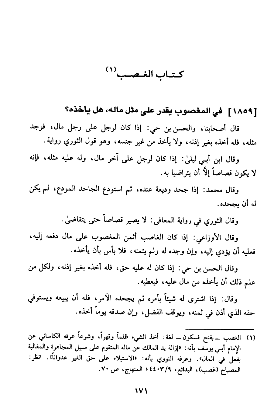 1859 - فِي الْمَغْصُوب يقدر على مثل مَاله هَل يَأْخُذهُ