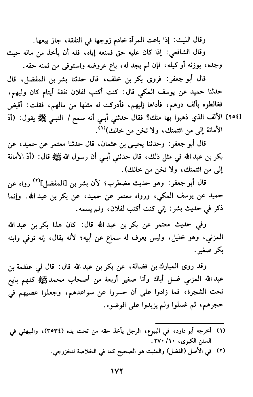 قَالَ أَبُو جَعْفَر فروى بكر بن خلف قَالَ حَدثنَا بشر بن الْمفضل قَالَ حَدثنَا حميد عَن يُوسُف الْمَكِّيّ قَالَ كنت أكتب لفُلَان نَفَقَة أَيْتَام كَانَ وليهم فغالطوه بِأَلف دِرْهَم فأداها إِلَيْهِم فأدركت لَهُ مثلهَا من مَالهم فَقلت أَقبض الْألف الَّذِي ذَهَبُوا بهَا مِنْك فَقَالَ حَدثنِي أبي أَنه سمع النَّبِي صلى الله عَلَيْهِ وَسلم يَقُول أد الْأَمَانَة إِلَى من ائتمنك وَلَا تخن من خانك