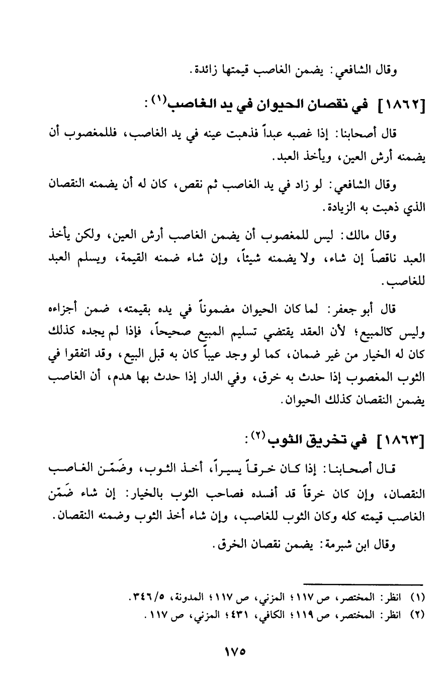 1862 - فِي نُقْصَان الْحَيَوَان فِي يَد الْغَاصِب