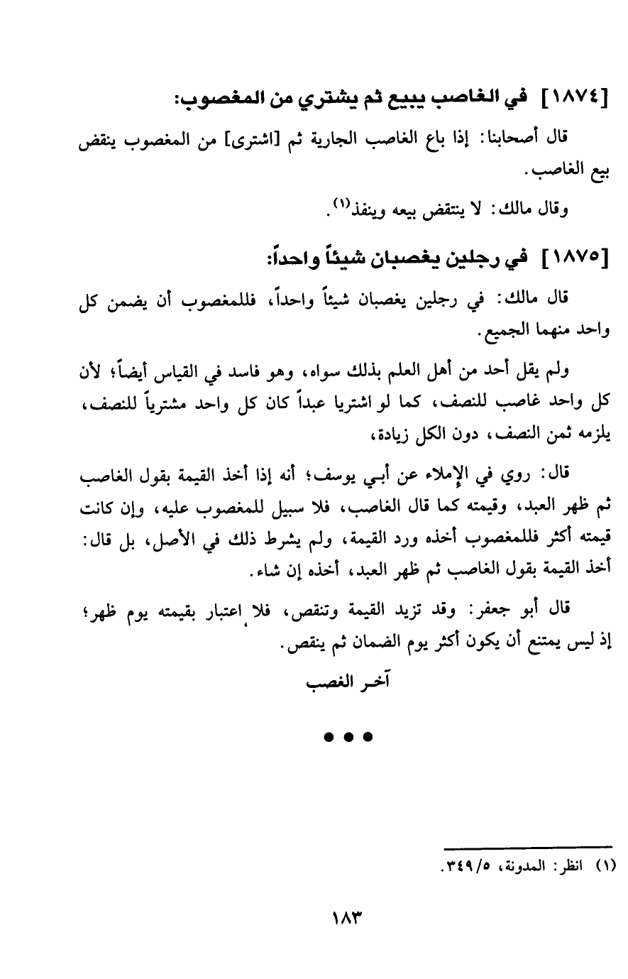 1874 - فِي الْغَاصِب يَبِيع ثمَّ يَشْتَرِي من الْمَغْصُوب