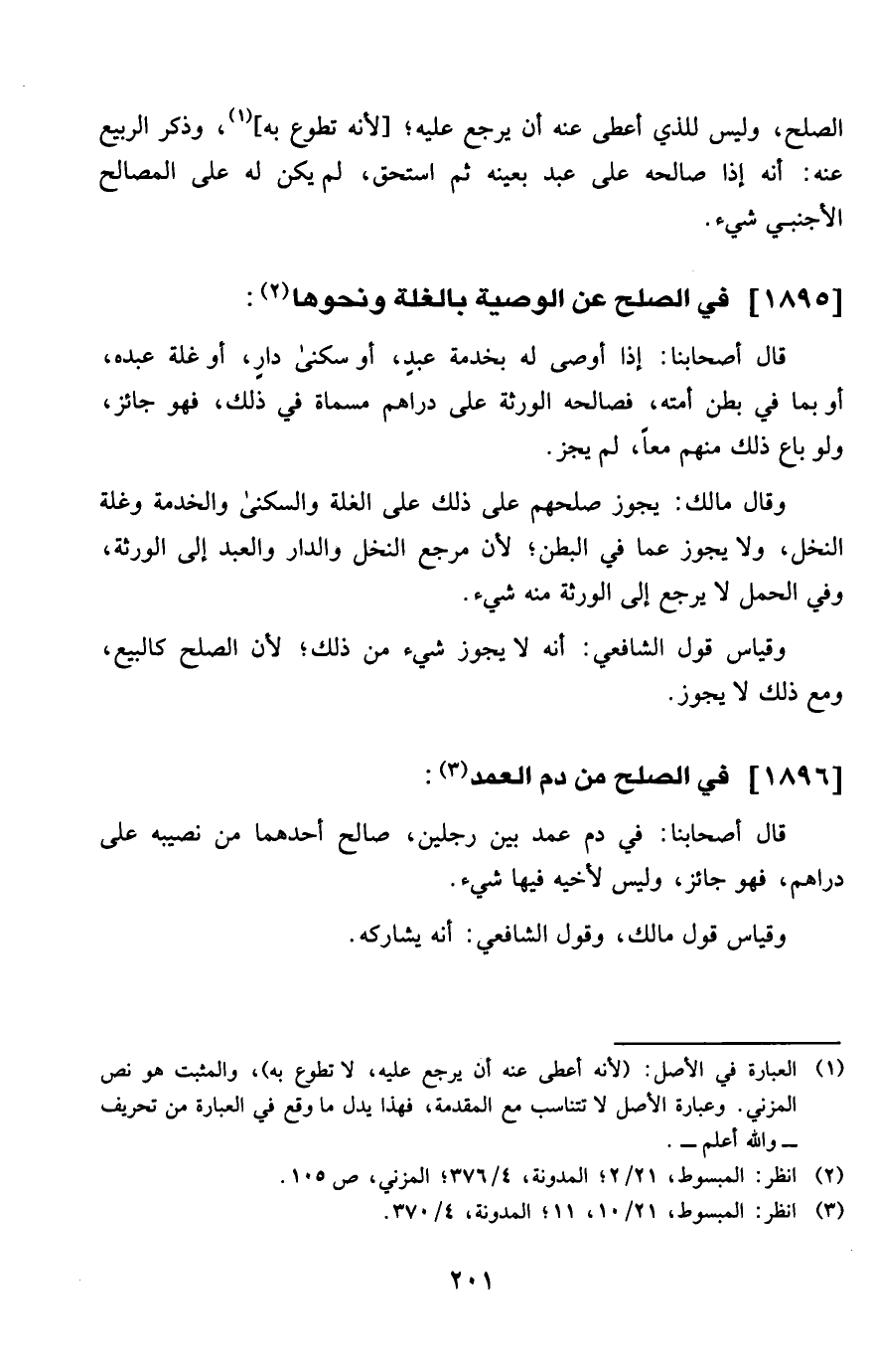 1895 - فِي الصُّلْح عَن الْوَصِيَّة بالغلة وَنَحْوهَا