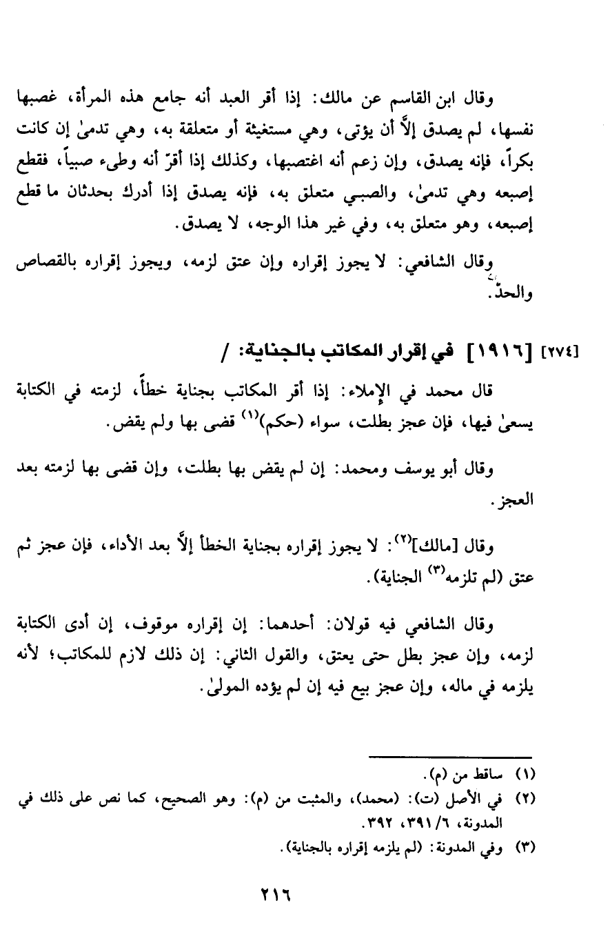 1916 - فِي إِقْرَار الْمكَاتب بِالْجِنَايَةِ