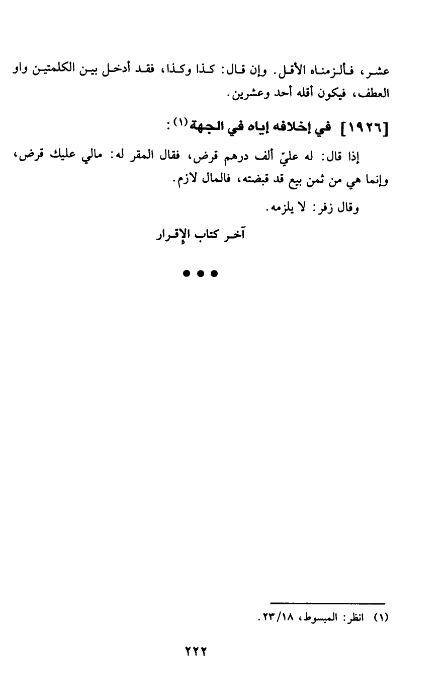 عشر فألزمناه الْأَقَل وَإِن قَالَ كَذَا وَكَذَا فقد أَدخل بَين الْكَلِمَتَيْنِ وَاو الْعَطف فَيكون أقل أحد وَعشْرين