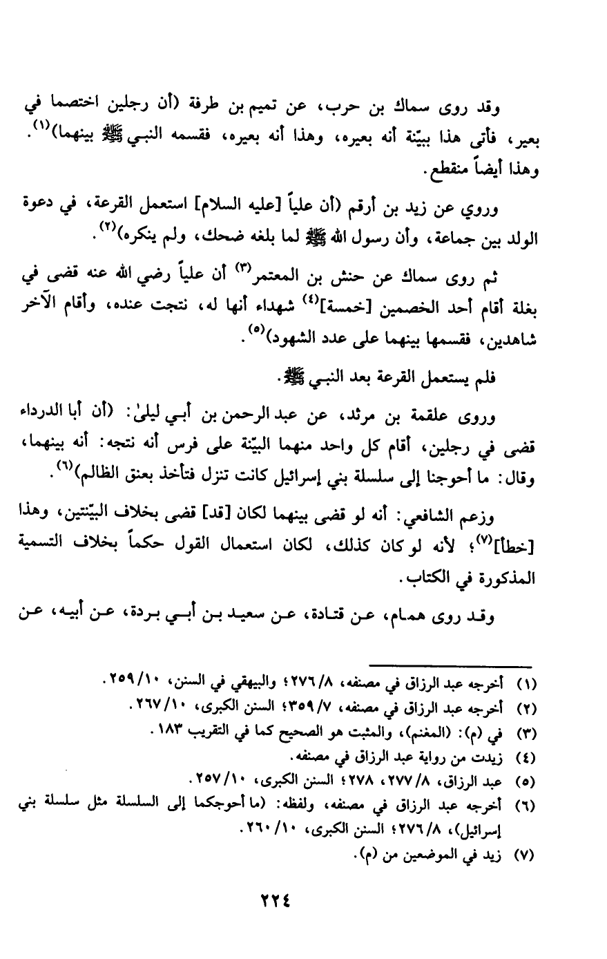 وروى عَن زيد بن أَرقم أَن عليا عَلَيْهِ السَّلَام اسْتعْمل الْقرعَة فِي دَعْوَة الْوَلَد بَين جمَاعَة وَأَن رَسُول الله صلى الله عَلَيْهِ وَسلم لما بلغه ضحك وَلم يُنكره