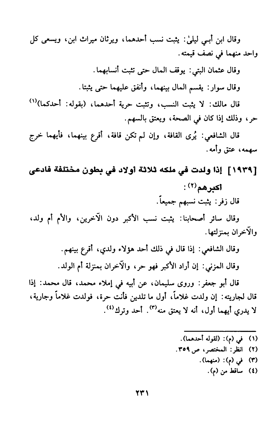 1939 - إِذا ولدت فِي ملكه ثَلَاثَة أَوْلَاد فِي بطُون مُخْتَلفَة فَادّعى أكبرهم