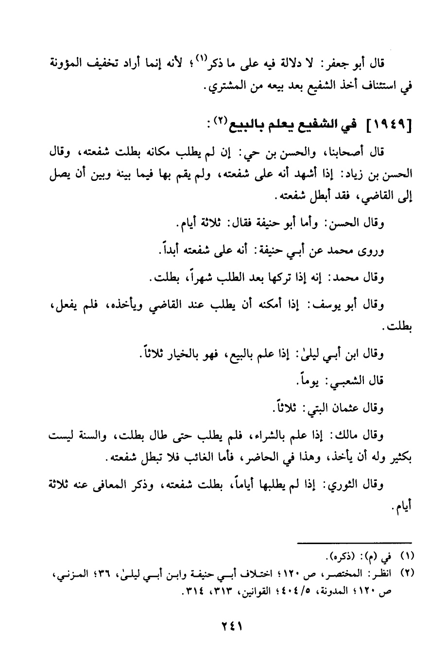 1949 - فِي الشَّفِيع يعلم بِالْبيعِ