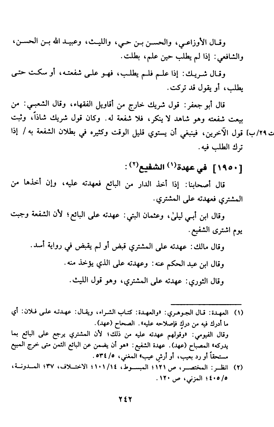 وَقَالَ ابْن أبي ليلى وَعُثْمَان البتي عهدته على البَائِع لِأَن الشُّفْعَة وَجَبت يَوْم اشْترى الشَّفِيع