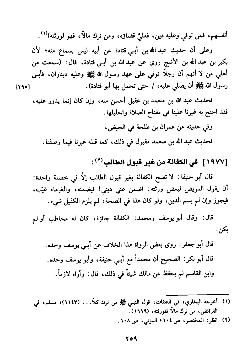 1977 - فِي الْكفَالَة من غير قبُول الطَّالِب