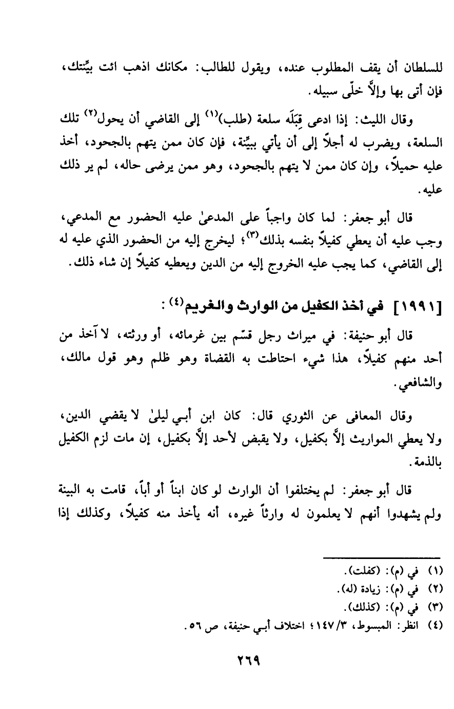 1991 - فِي أَخذ الْكَفِيل من الْوَارِث والغريم