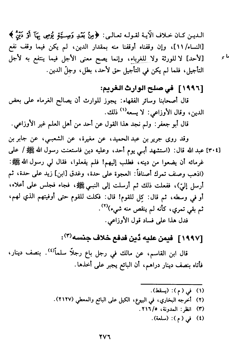 1996 - فِي صلح الْوَارِث الْغَرِيم