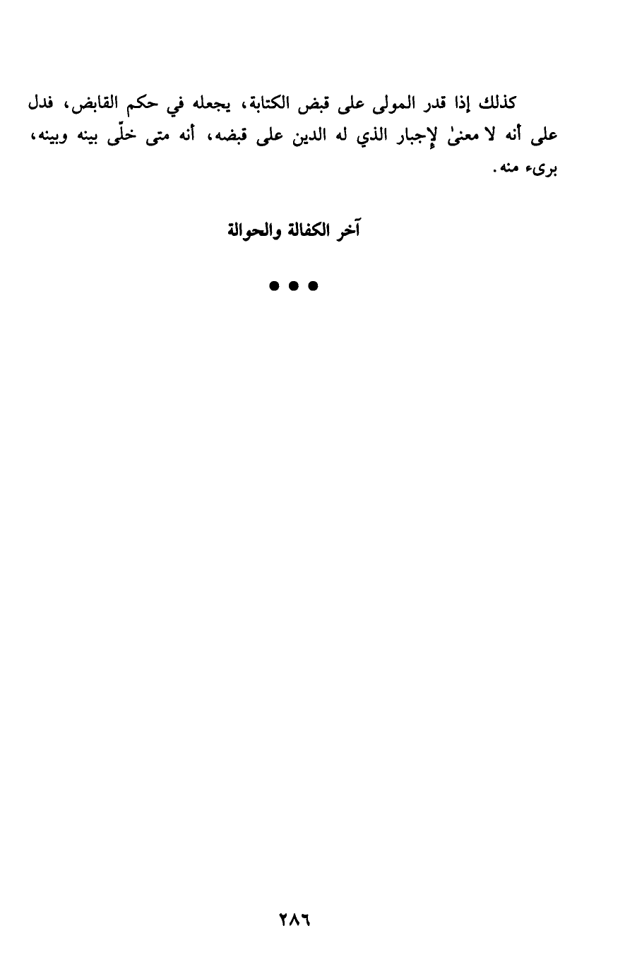 كَذَلِك إِذا قدر الْمولى على قبض الْكِتَابَة يَجعله فِي حكم الْقَابِض فَدلَّ على أَنه لَا معنى لإجبار الَّذِي لَهُ الدّين على قَبضه أَنه مَتى خلى بَينه وَبَينه برِئ مِنْهُ