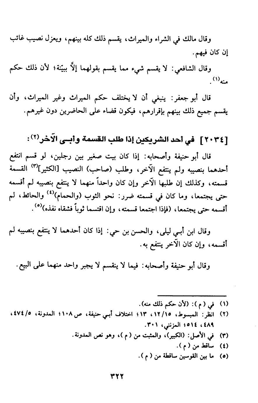 2034 - فِي أحد الشَّرِيكَيْنِ إِذا طلب الْقِسْمَة وأبى الآخر